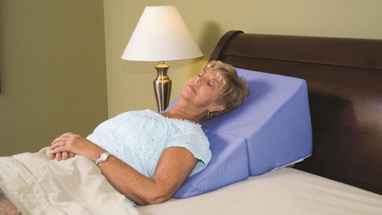 Una almohada cuña o una cama eléctrica para elevar la cabeza y el pecho durante el sueño.