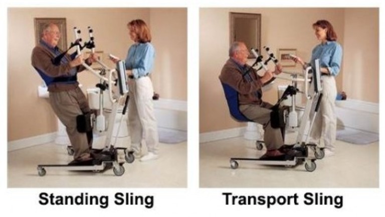 Oirá que se denominan comúnmente "grúa Hoyer", por el inventor e innovador que lanzó la marca a medida. Estas grúas son arneses completos que acunan y mueven a la persona entera (normalmente para personas con poca o ninguna movilidad). Estas grúas rara vez son manuales, aunque las hay. La mayoría de estos elevadores son portátiles y funcionan con potentes baterías recargables, aunque algunos se instalan en la estructura de la habitación.